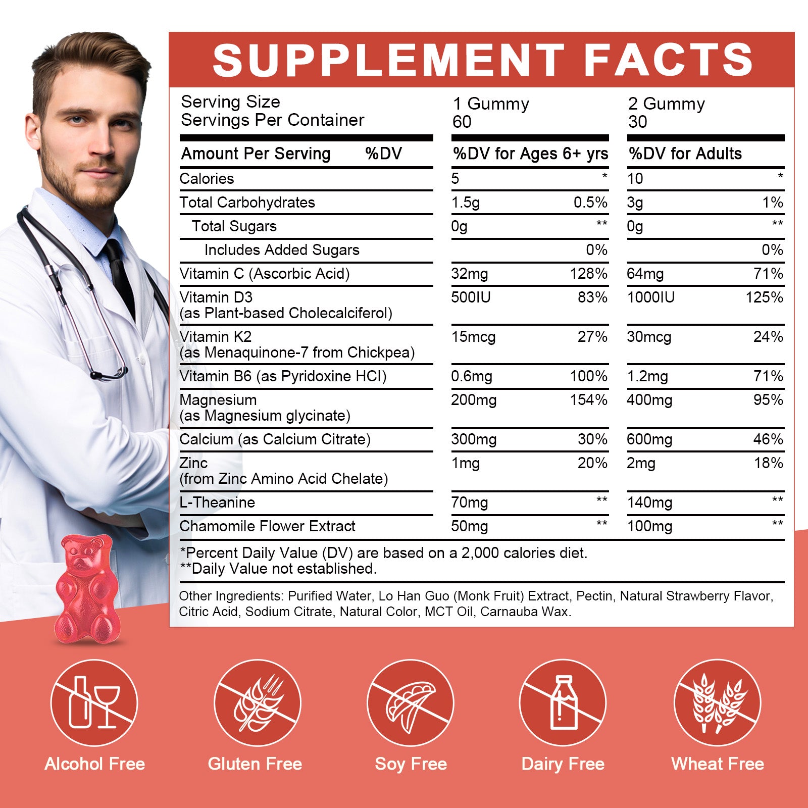 Delicious & Easy to Take: These gummies are delicious strawberry flavor and fit effortlessly into your day. And these gummies are suitable for kids, teens and adults. One to two gummies a day that fit easily into bedtime or daily wellness routines.